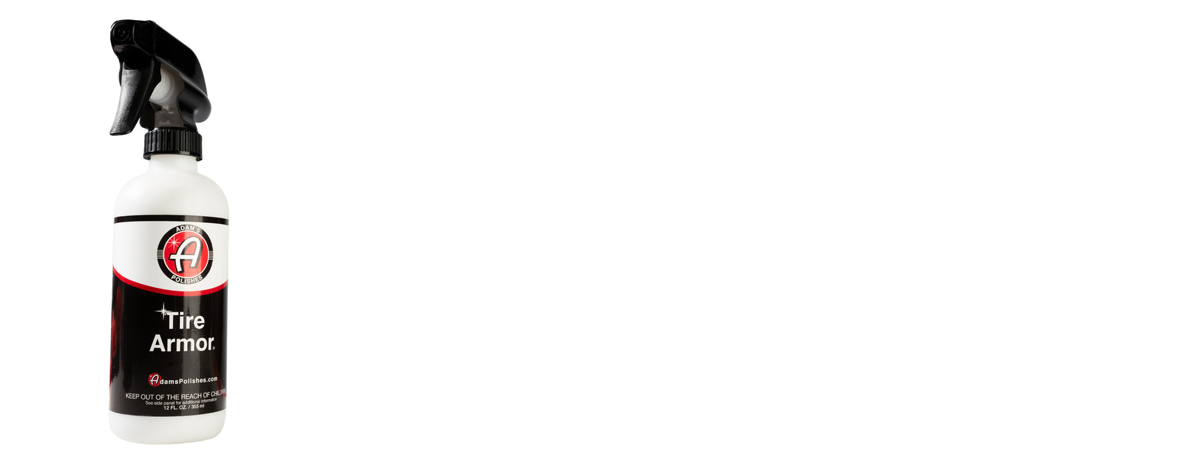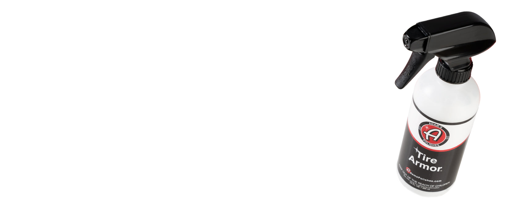 Adam’s Tire Armor is a semi-permanent tire clear coat that provides a high gloss, dry to the touch finish that will protect tires for many months. Adam’s Tire Armor forms a solid, durable coating, fortified with UV inhibitors, that remains flexible and locks out water, repels dirt, mud, dust and salts – keeping the tire cleaner for longer and easier to maintain. The durability of Adam’s Tire Armor can be measured in months and not days or weeks, compared to a conventional tire dressing.