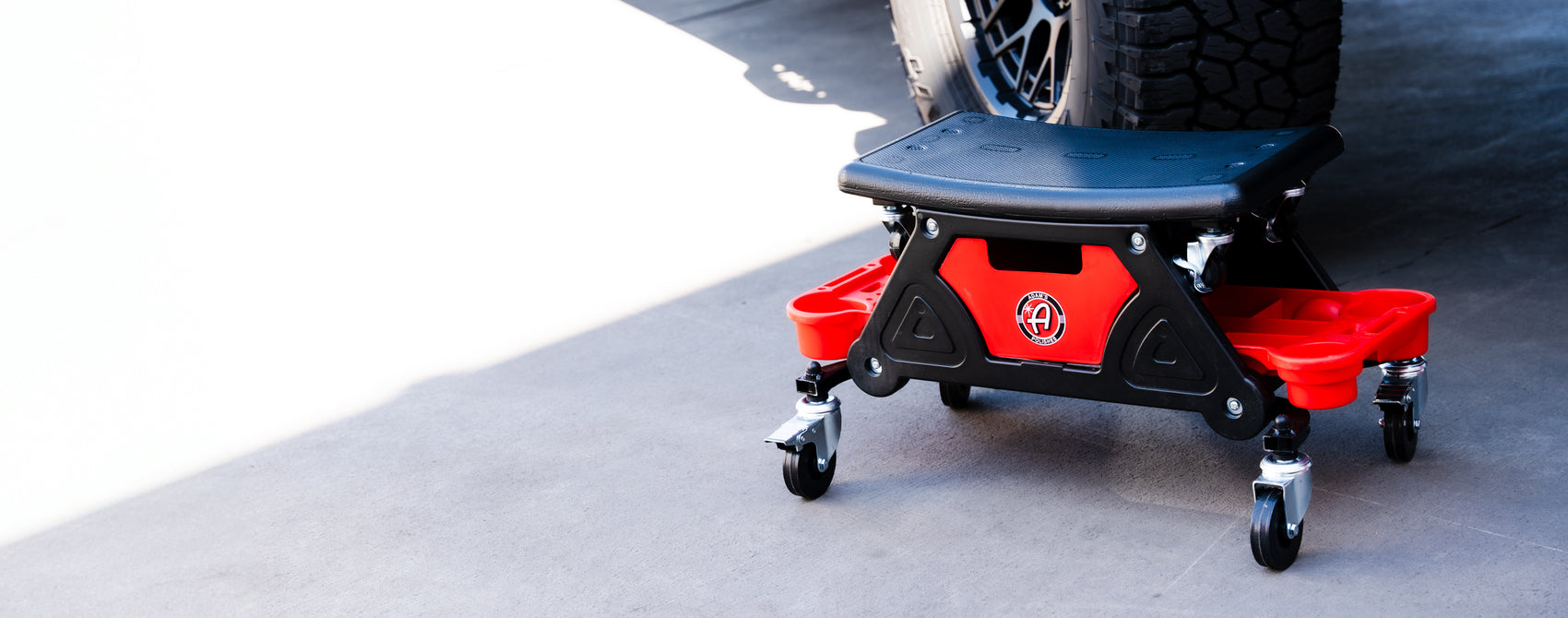 Good seating is important for a wide range of automotive tasks such as brake pad replacement, bodywork, and detailing. A long day’s work in the shop will take far less toll on your body if you can sit at a crouching height and roll around from place to place.