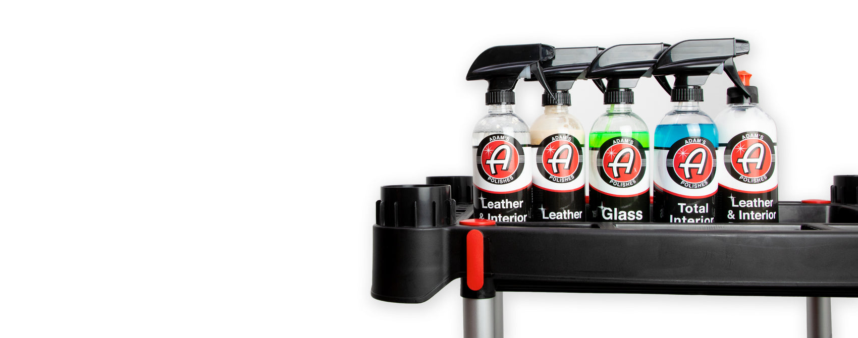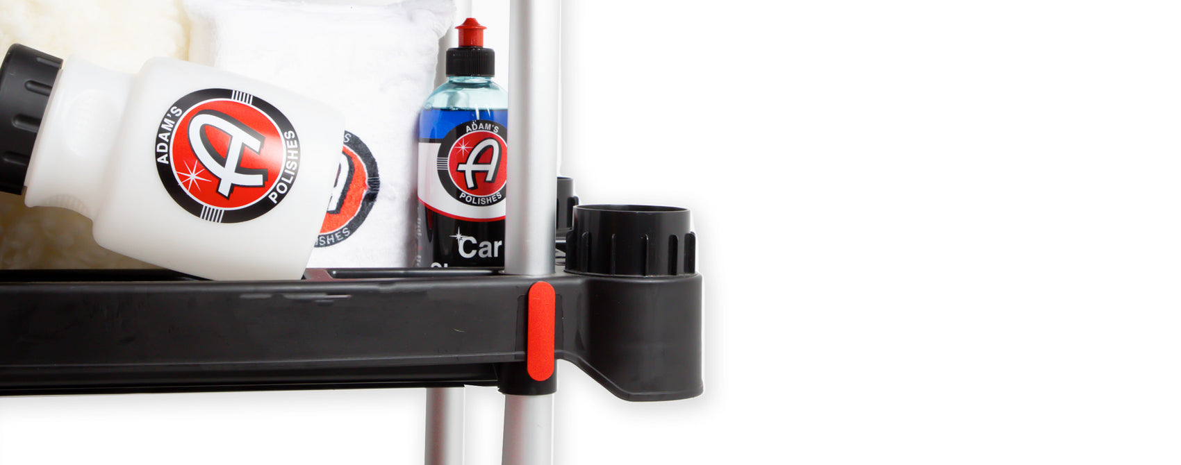 Adam’s Standard Detail Cart keeps your detail supplies organized. This sturdy plastic and aluminum cart provides mobility and increased maneuverability around your vehicle during your detailing process. Each Shelf has two dividers that are easily removed if you prefer or need a wider surface area! Behind each tray, there are two 8/16oz bottle holders and a cable wrap for your polishers, air tools, or extension cords!