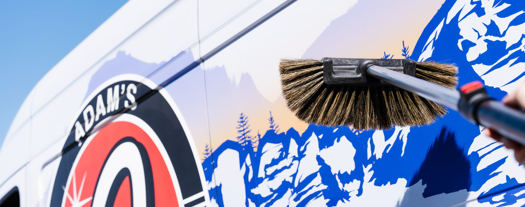 It's very important to note that this Truck Brush is NOT intended to be used to clean your prized-possession show vehicle, but it is a very effective way to clean large work vehicles in a fairly safe manner! Use the Adam's Truck Brush with our Foam Gun or Foam Cannon setup to suds the vehicle down with thick soap, then make a few passes with the Truck Brush to clean quickly and effectively. Scrub the Truck Brush against the Grit Guard and Washboard in your rinse bucket to remove dirt and contamination from the long fibers, and then reload the brush with Adam's Car Shampoo from your soap bucket or foamer setup.