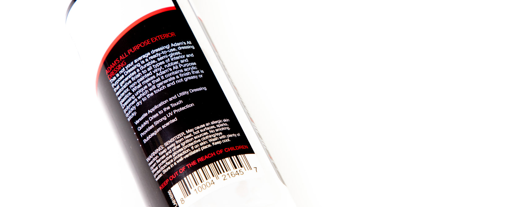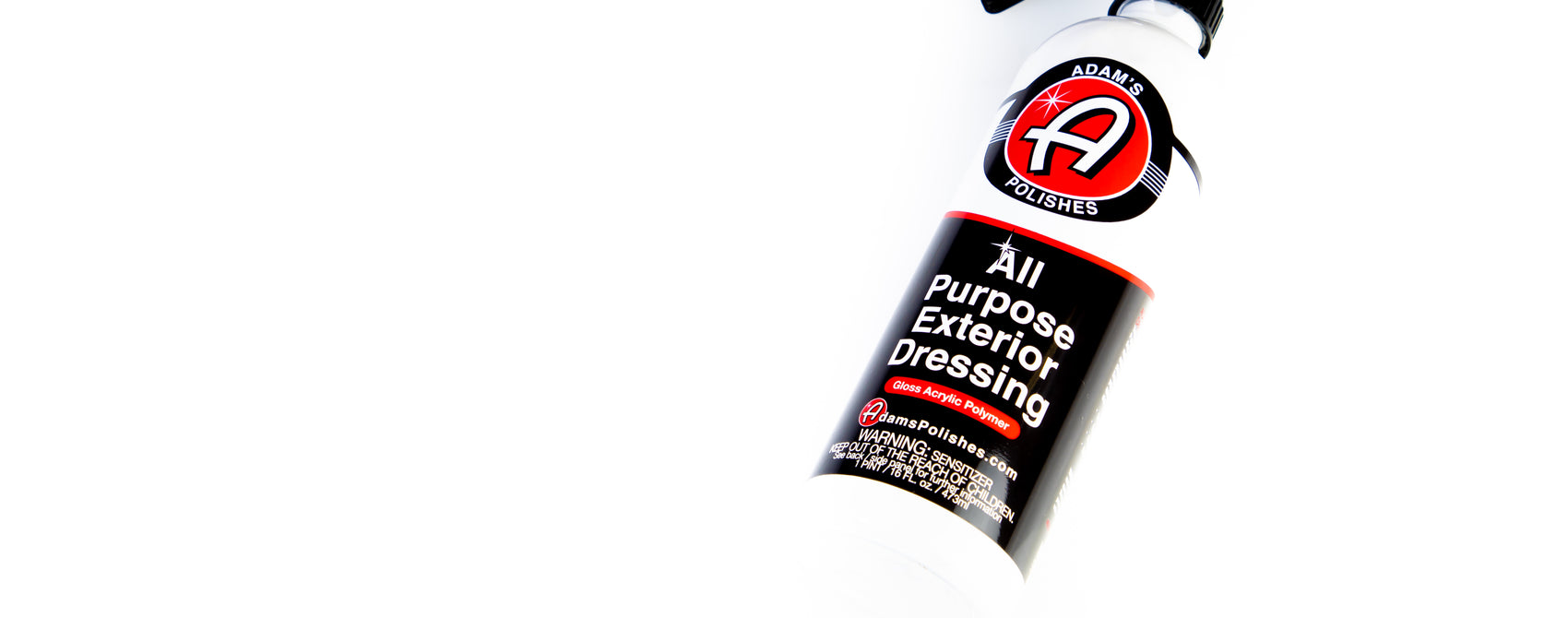 This is not your average dressing! Adam’s All Purpose Dressing is a ready-to-use, water-based, sprayable dressing that generates a durable, semi-gloss, restorative finish to all types of interior and exterior, non-painted vinyl, rubber, and plastics. What makes Adam’s All Purpose Exterior Dressing unique is that it contains acrylic polymers which will generate a finish that is quickly dry to the touch and not greasy or sticky. It also contains a blend of UV radical scavengers and absorbers to ensure the surface is protected from UV and oxidative stress, making it a choice, all-around protectant for a variety of surfaces.