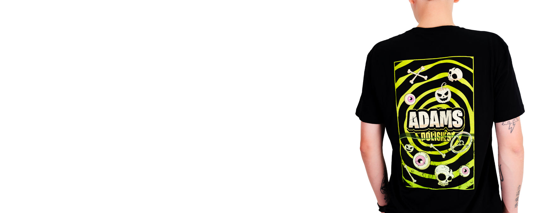 Like always for our Halloween Collection, we took a few of the assets from the collection and spread them across apparel, stickers and air fresheners. This T-shirt features a front and back design similar to the label design.