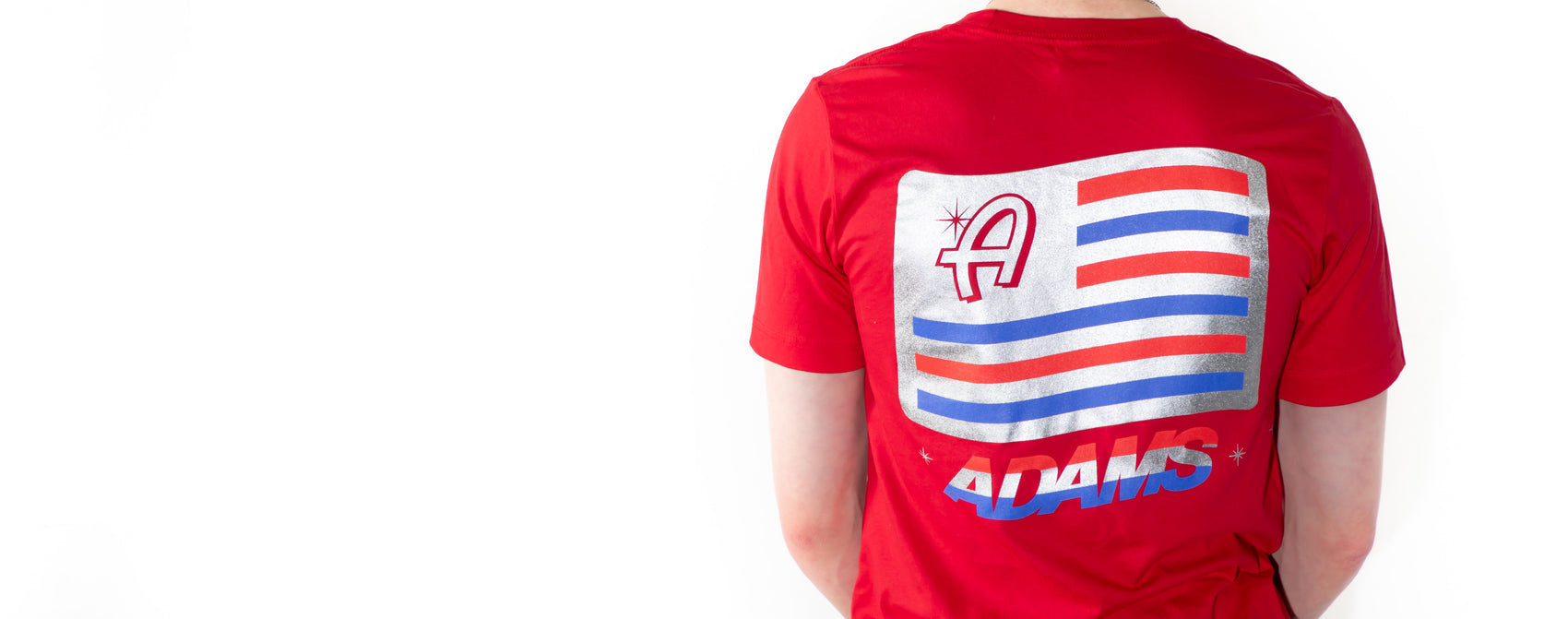 Adam's Red USA Logo Shirt includes a patriotic design on the front and back of the shirt.