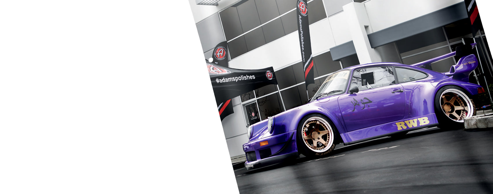 Do you love Adam's Polishes? Then this banner is for you! Share your detailing passion by hanging this banner on your garage or shop wall, to let everyone know what products you use to make your rides shine. This 4' x 3' banner features an RWB Porsche in front of our Retail Showroom in Anaheim, California. Comes with a grommet at each corner and on each side for securely mounting to the wall.