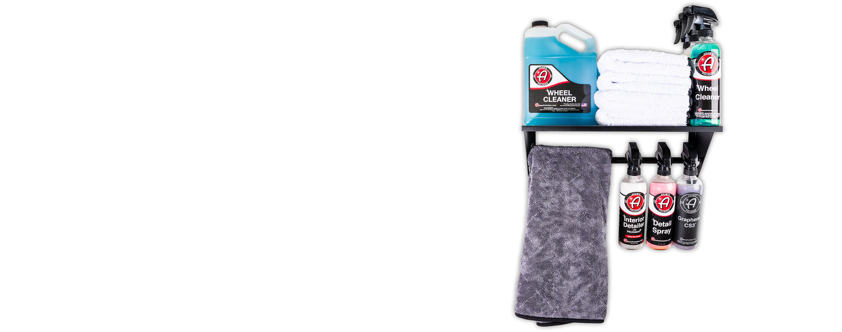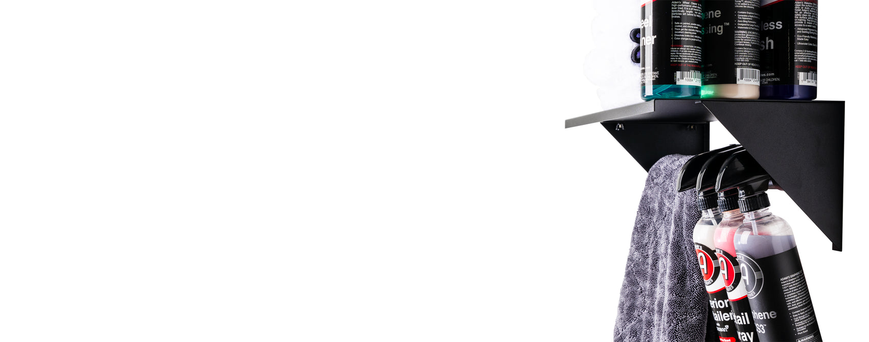 Adam's Shelf & Storage Bar can be used in a variety of different ways. Garage organization and storage is important in the detailing process. We made this shelf to be able to hold whatever it is you are wanting to put on the shelf and the storage bar. Hang your 16oz bottles and towels on the bar or set them on top of the shelf. You can even put an Active Pressure Washer, other small compact pressure washers, or gallon refills on top of the shelf too.