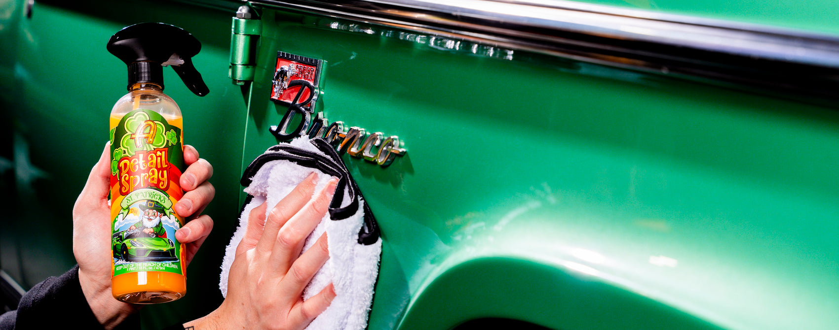 If you ever wondered what a leprechaun drove as a daily driver, now you know! This St. Patrick's Day Detail Spray smells like a fresh citrus orange scent. Our Classic Detail Spray Formula with a new scent and color. Simply spray and wipe for a streak-free, brilliant finish that is guaranteed to outshine the competition.