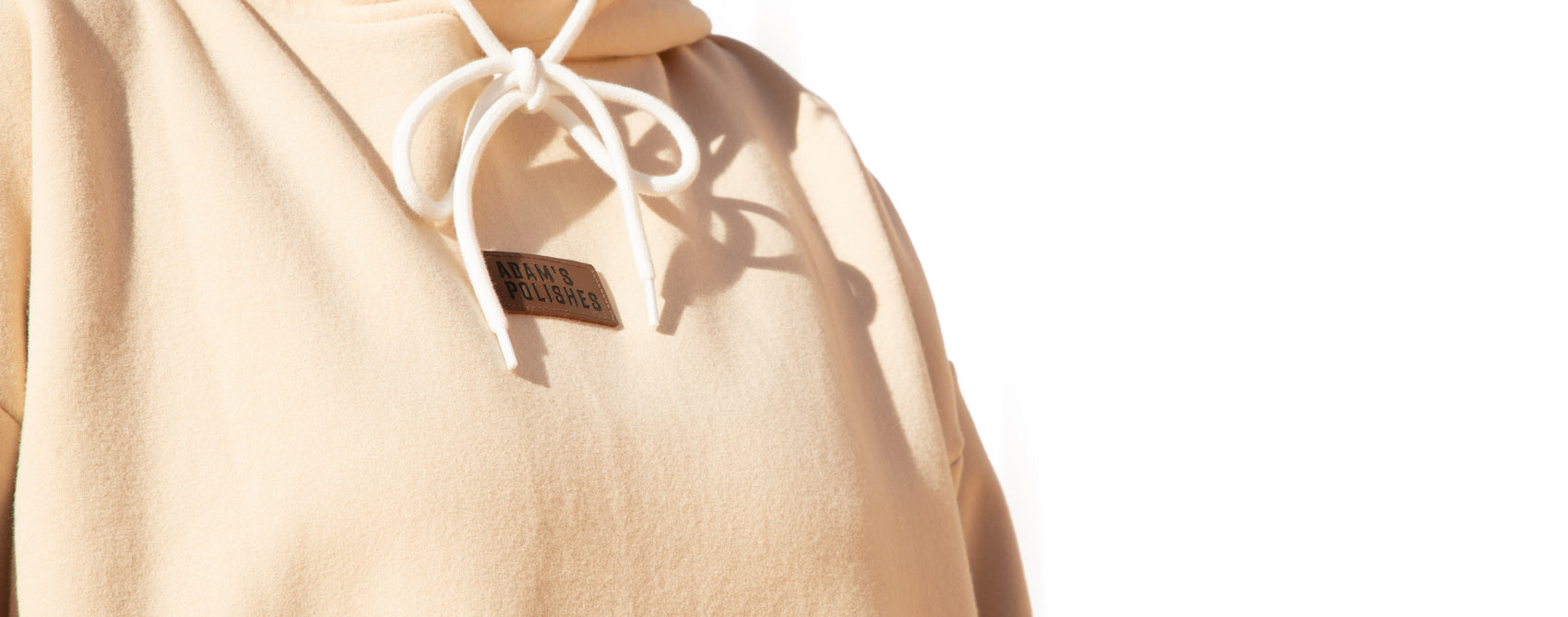 Adam's Tan Hoodie has a simple box logo leather patch for the perfect mid-weight hoodie year round.