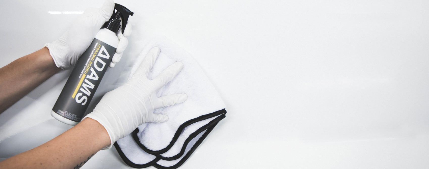 7. Spray a fine mist of Adam’s Ceramic Boost onto the wet panel and dry vehicle with an Adam’s Ultra Plush Drying Towel.