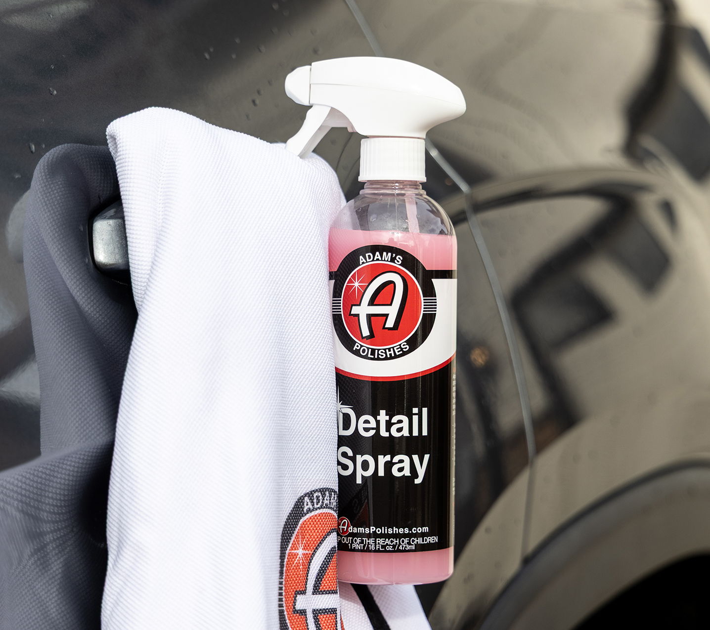 Adam’s Detail Spray is safe on paint, glass, chrome, wheels, grilles, and trim to safely clean and shine with just a mist and wipe using an Adam’s Premium Microfiber Towel.