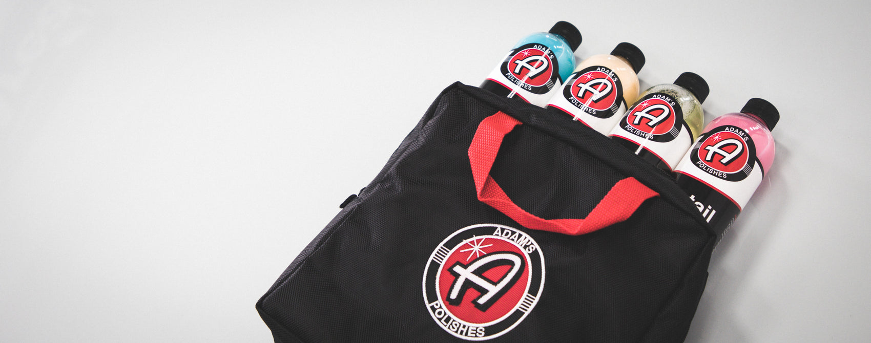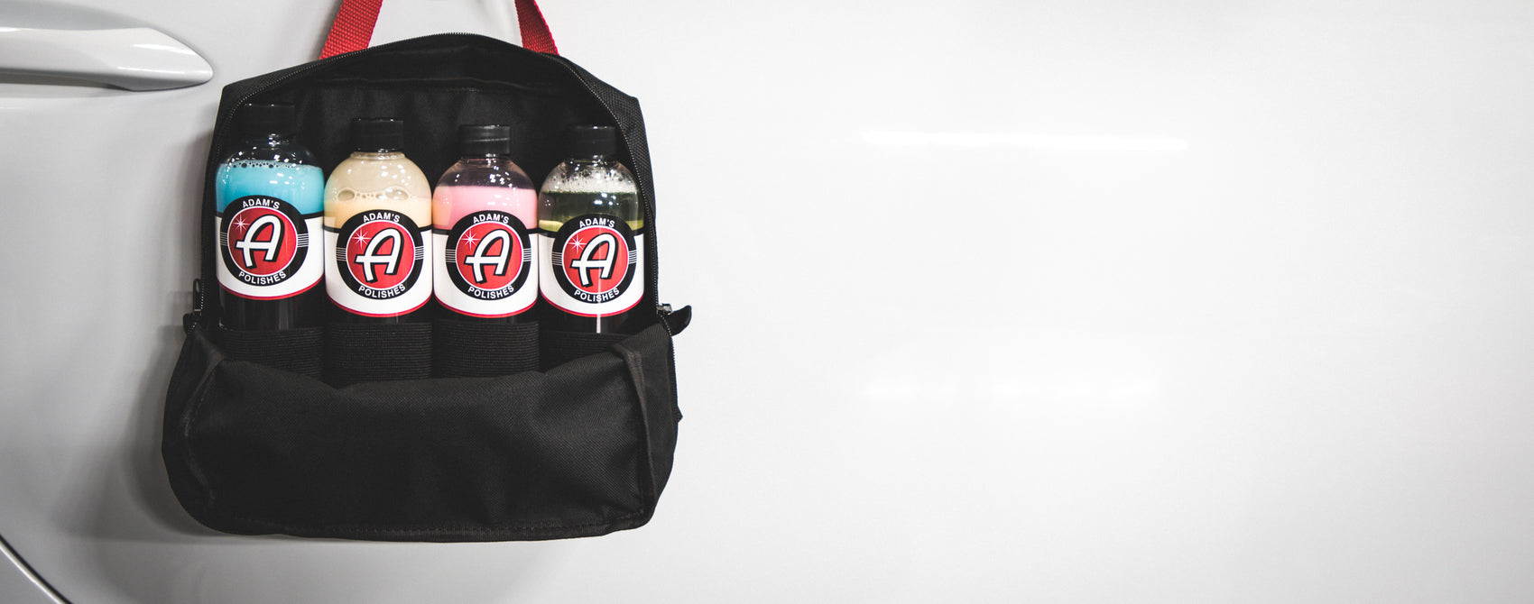 Adam's 4 Bottle Bag Kit includes our ph neutral Car Shampoo, Tire Shine, Buttery Wax, and Detail Spray (our top seller). The kit also comes with one Single Soft Towel, one Microfiber Applicator, and one Foam Tire Block Applicator. This kit will be delivered pre-built by our team. All you have to do is unzip the bag and get to work!