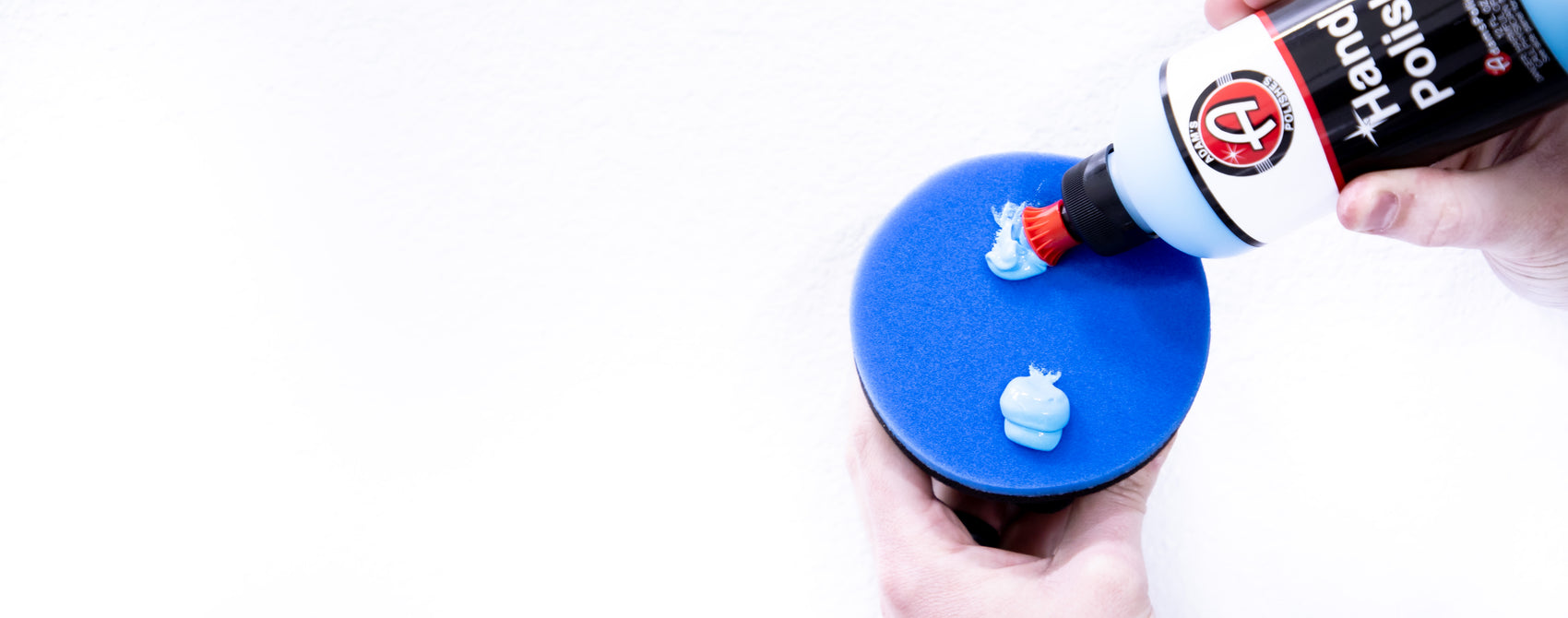 - Apply several pea-sized drops to a White Foam Polishing Pad and, using a dual-action polisher on medium speed, buff one vehicle panel at a time using light-to-moderate pressure and slow passes.