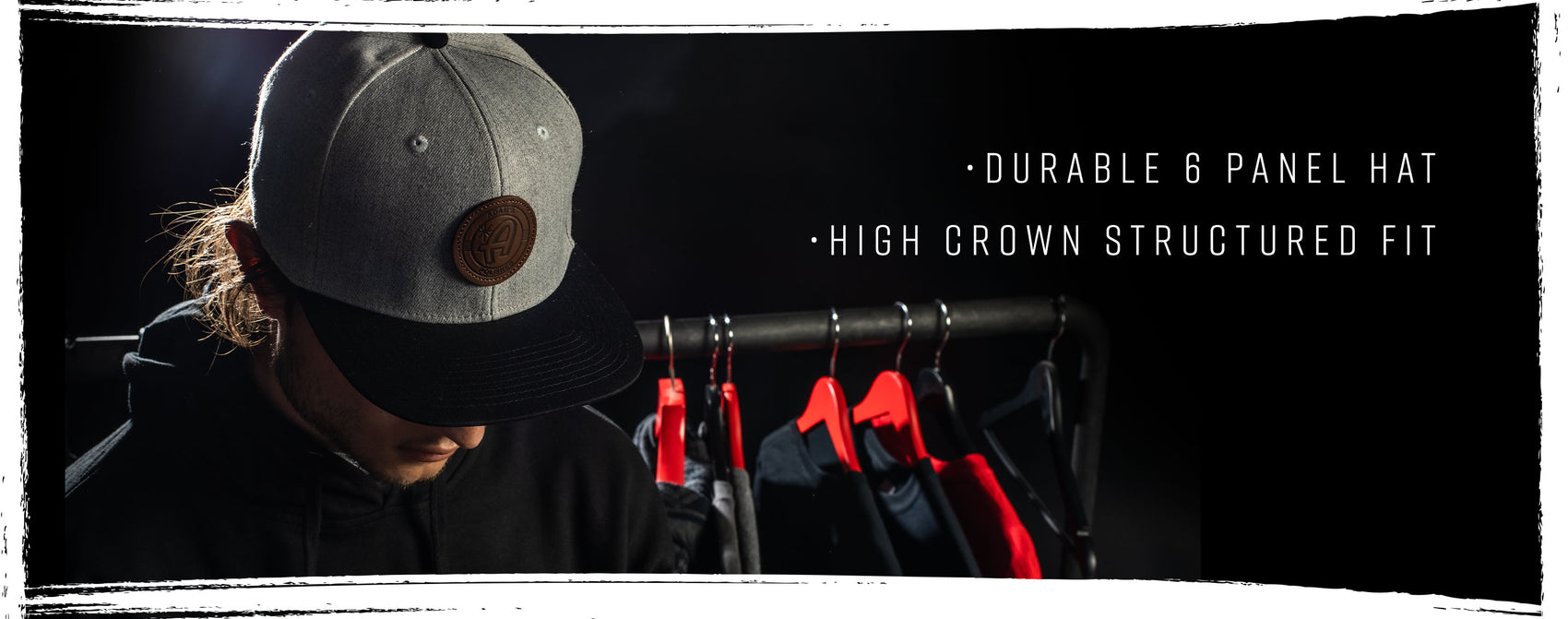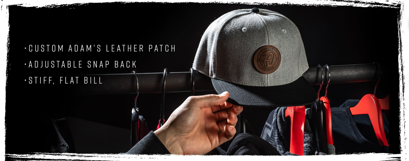 The Grey & Black Hat with Brown Leather patch gives it a modern but rustic look, on a customized Adam's Polishes branded hat.