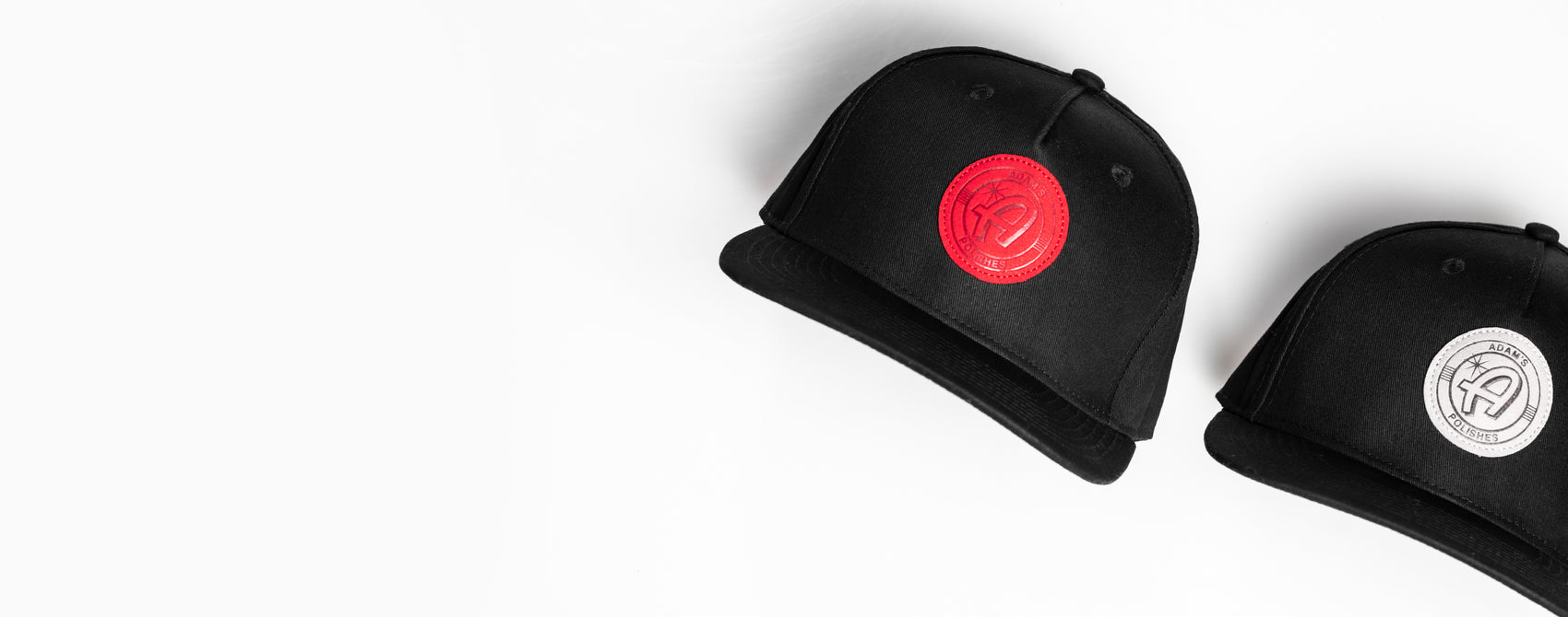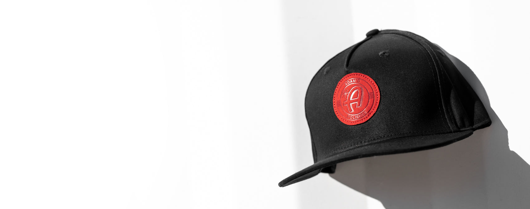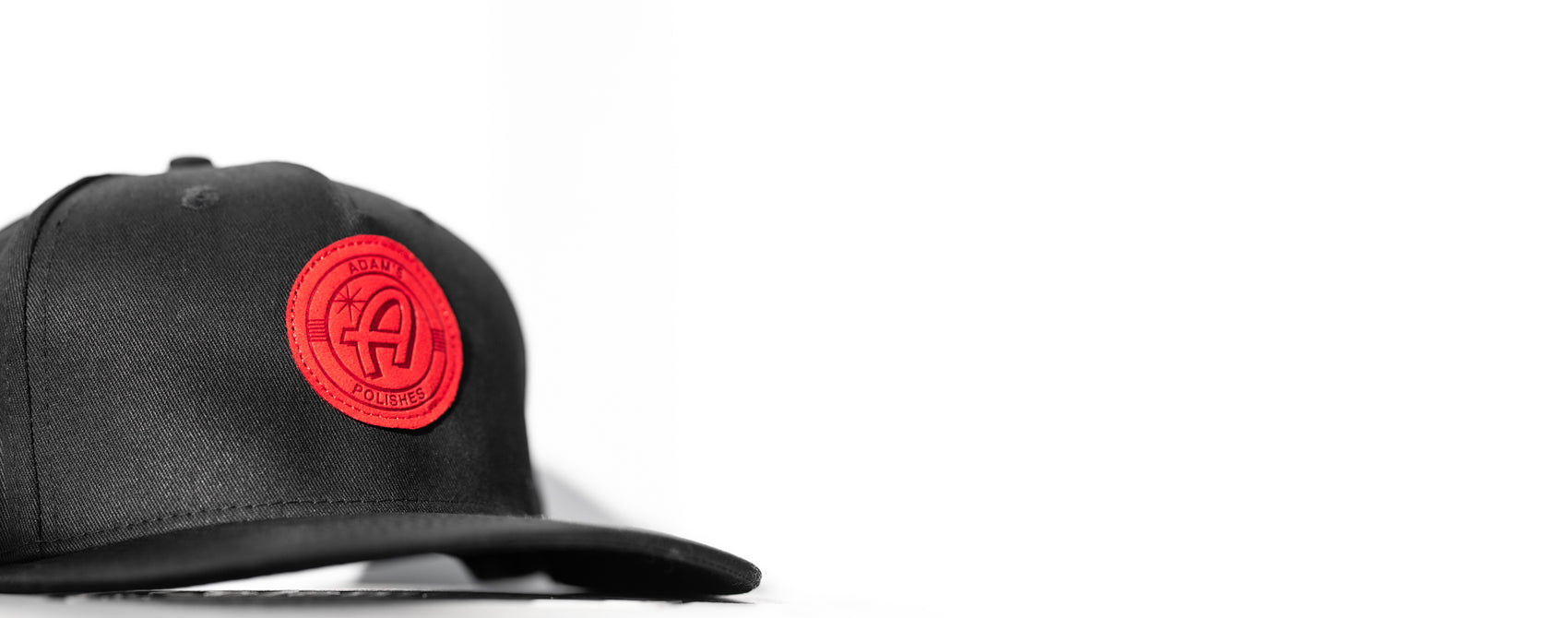The all black look is easy to keep clean and has a sleek red faux leather patch on a customized Adam's Polishes branded hat.
