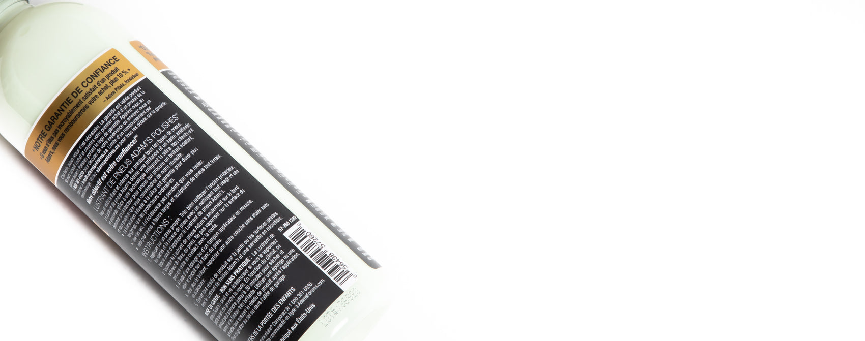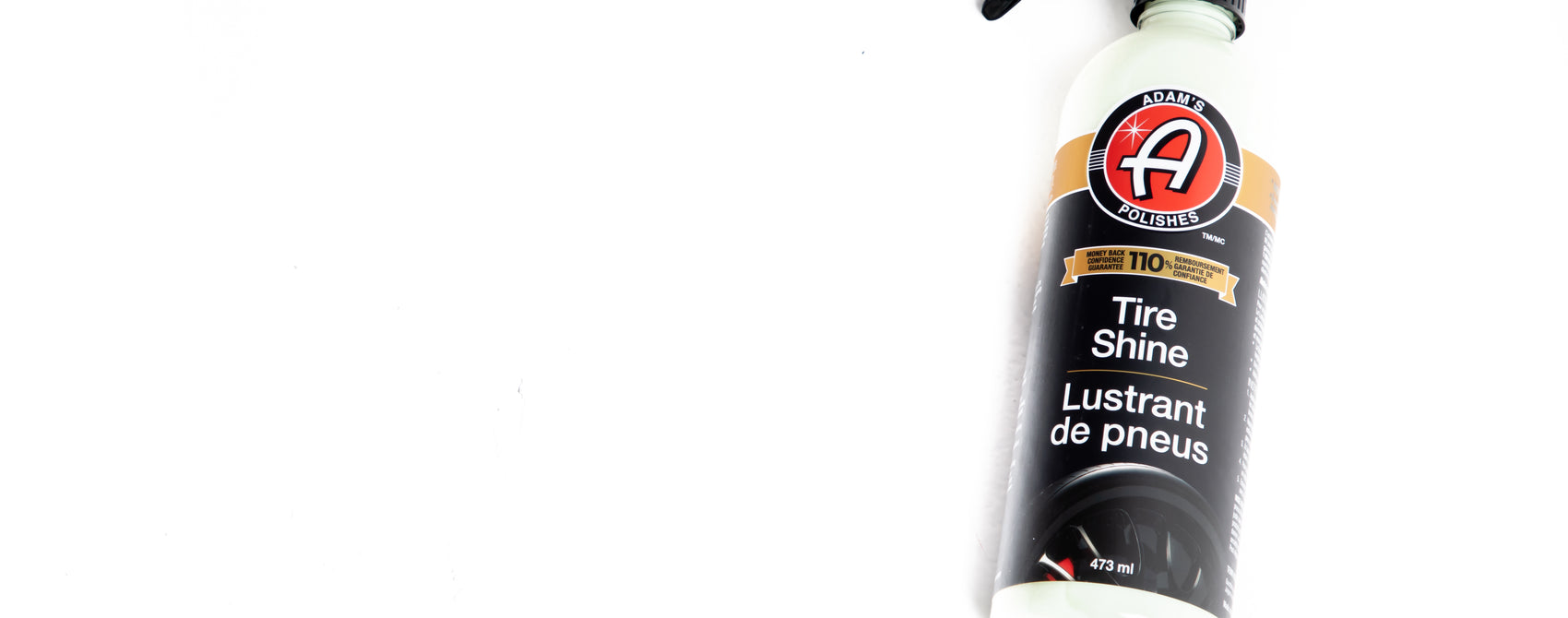 - Spray Adam's Tire Shine only onto the outer edge of the tire sidewall. Do not spray onto the tire surface that contacts the road.