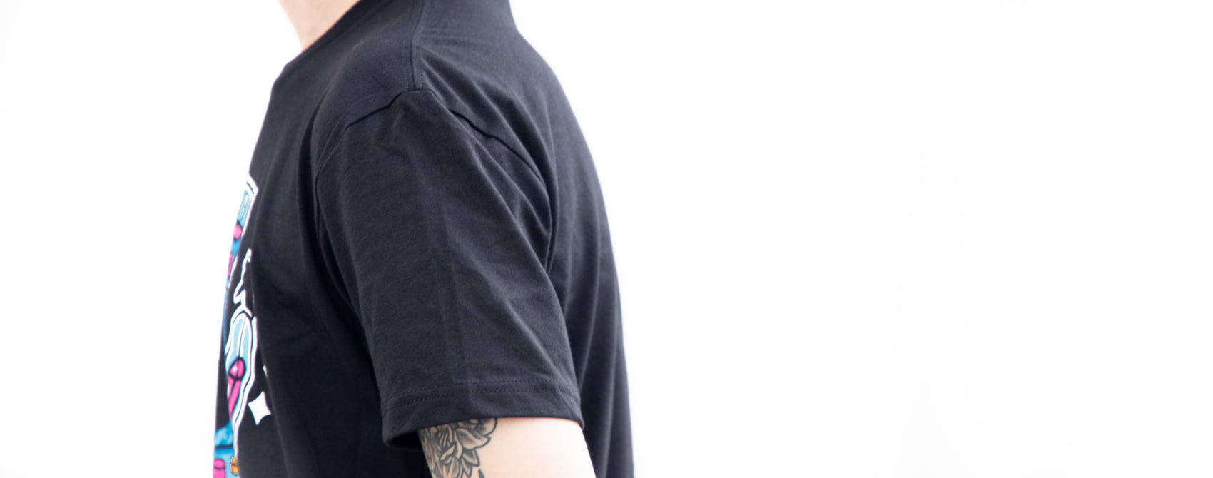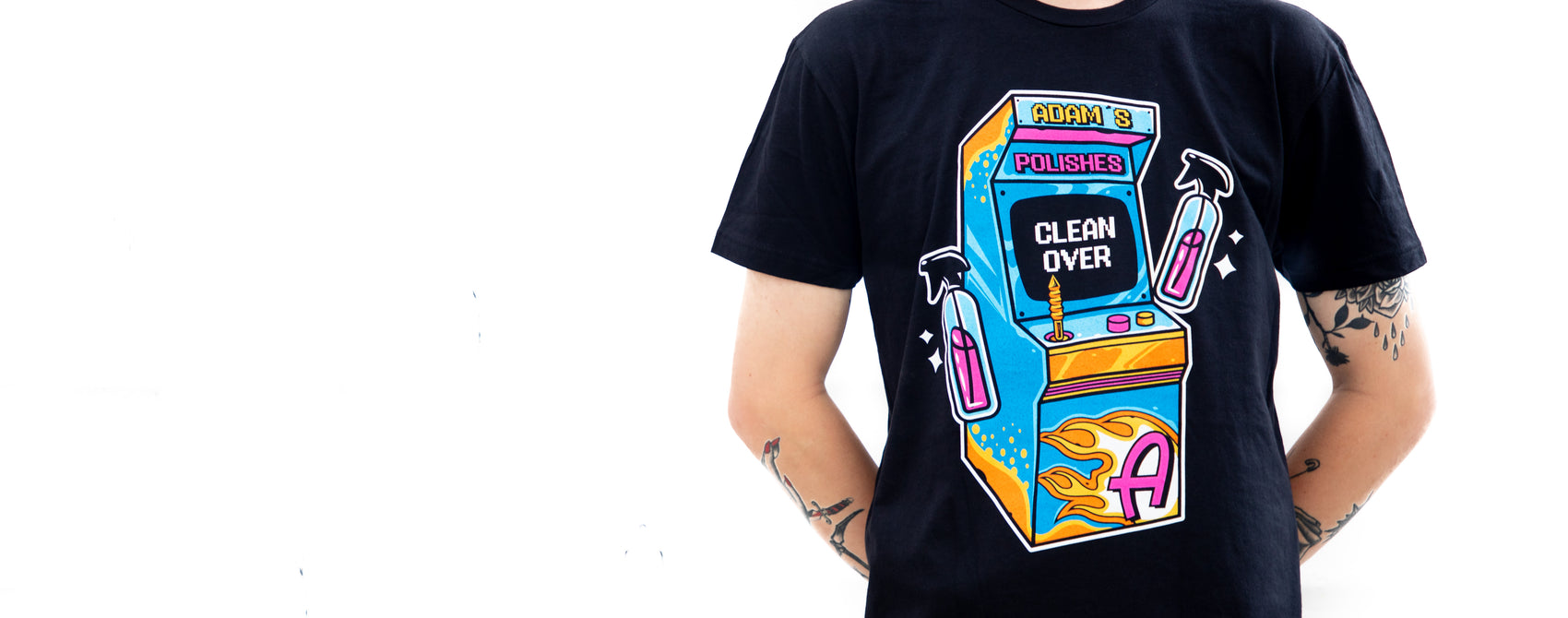 The Clean Over Arcade T-shirt is designed in a polyester/cotton blend and features our Clean Over Arcade design in a vibrant blue, orange, and pink color way!