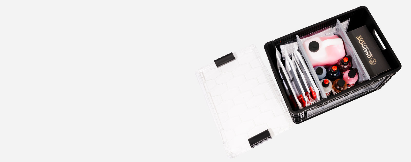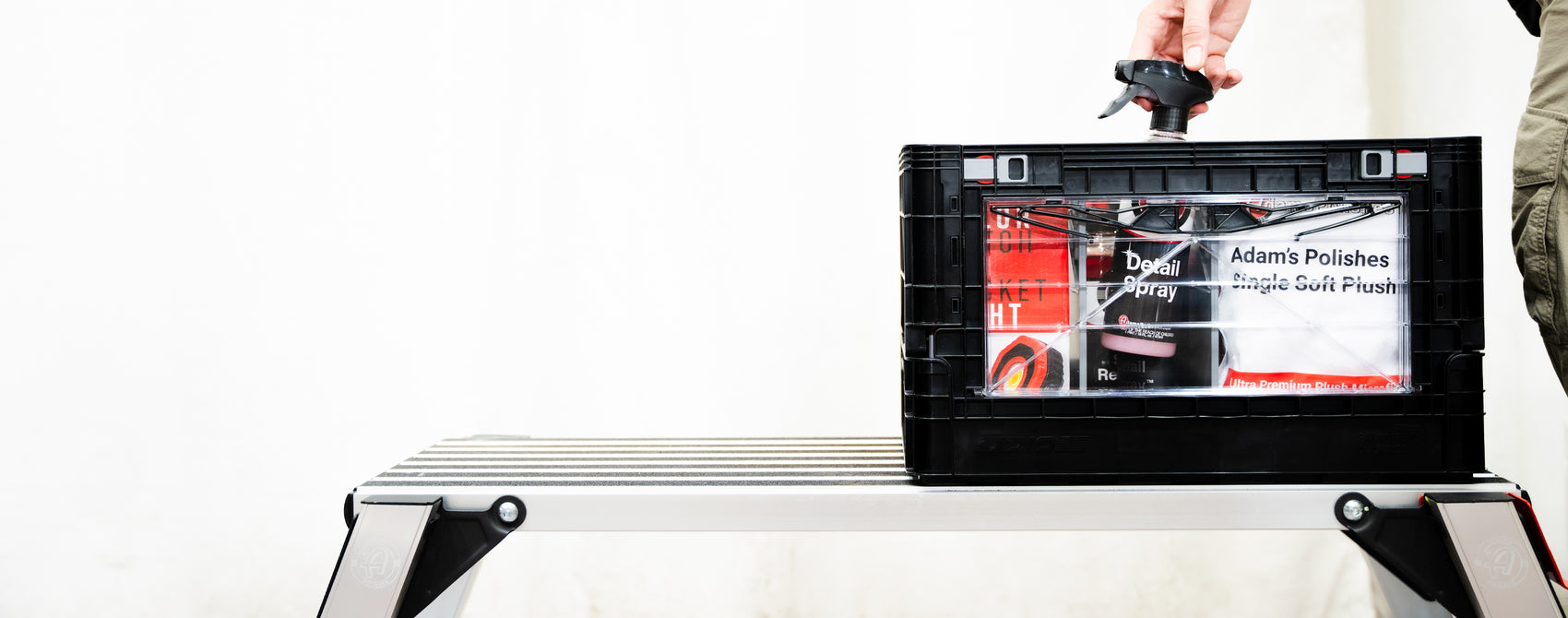 Adam's Collapsible SidioCrate Pack is a customizable crate with over 40 different divider slots with the capability to collapse down when not in use. This Crate Pack is stackable with or without the quick, snap on, polycarbonate lid. You could put anything inside of this to organize your detailing products. Don't worry if you don't have access to the top of the crate, you can open the side windows to access what you need inside without down stacking multiple crates.