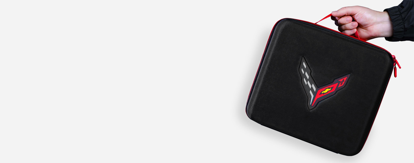 Adam's Corvette Soft Shell Case features the Corvette Logo on the front and the Adam's Logo on the back. Includes a red carrying strap and built in net inside to hold your towels and applicators.