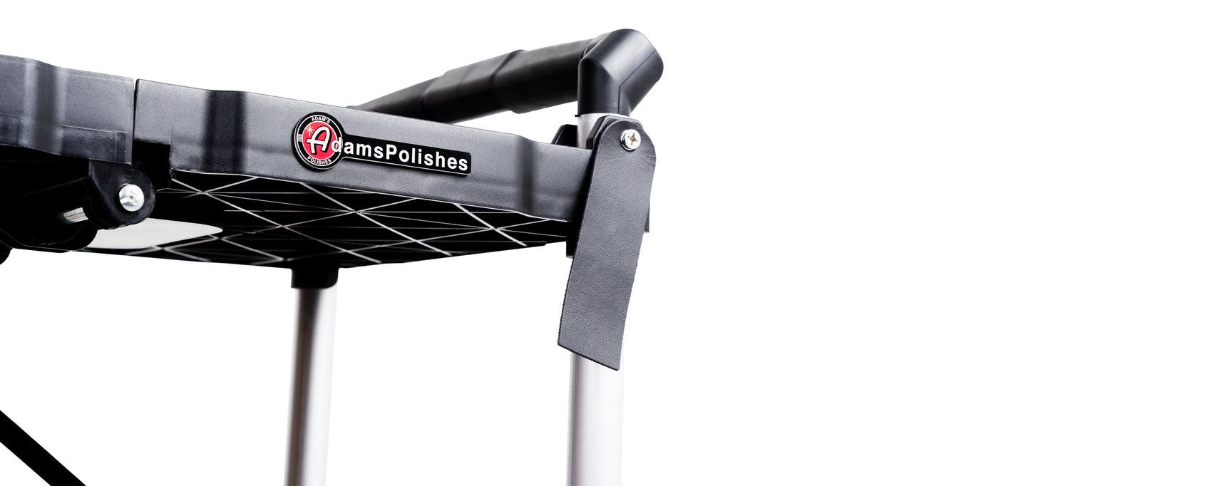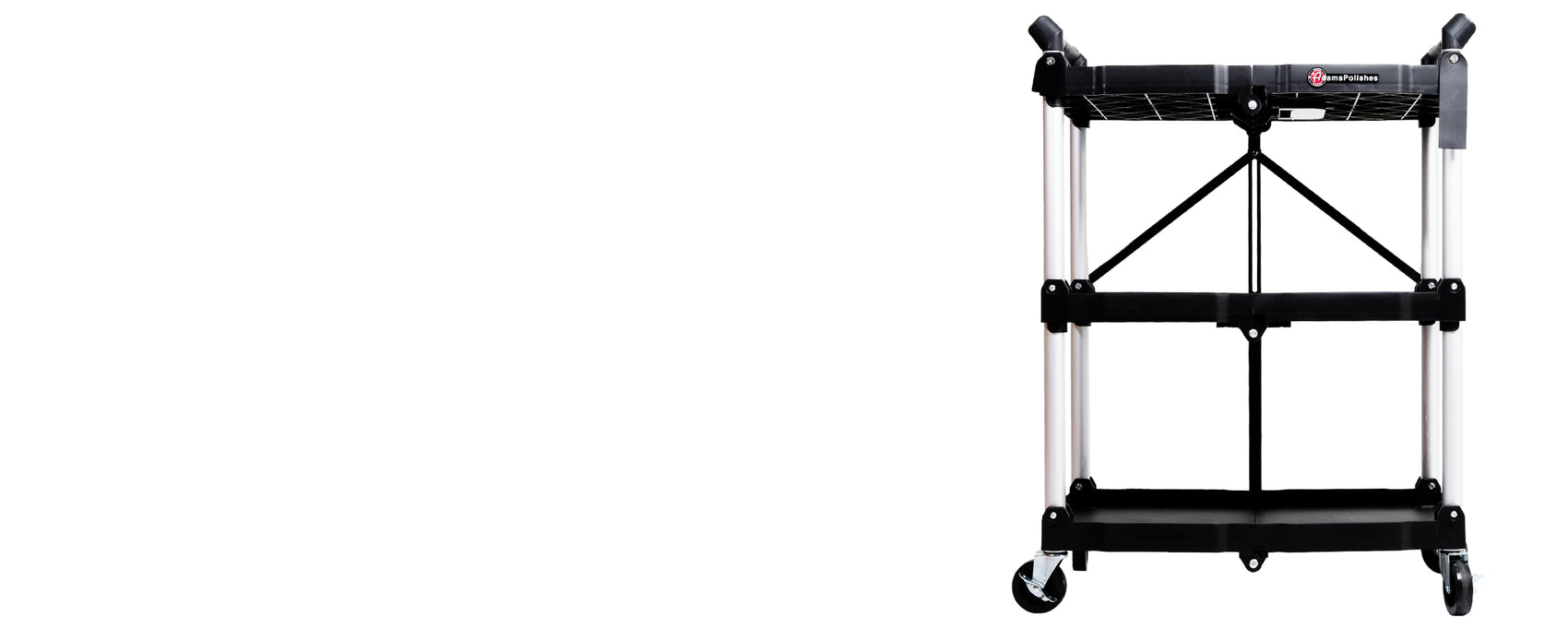 Pulling on the center handle will allow you to fold the cart up by pulling on the handle on top straight up, cutting down the width of the cart by almost two-thirds. When unfolded, the cart offers three large storage areas made of durable ABS plastic. Each shelf has a weight capacity of 65 pounds, so you will be able to store your machine polishers, pads, polishes, towels, and other detailing supplies no problem - to keep them nice and organized right where you need them during a detail!