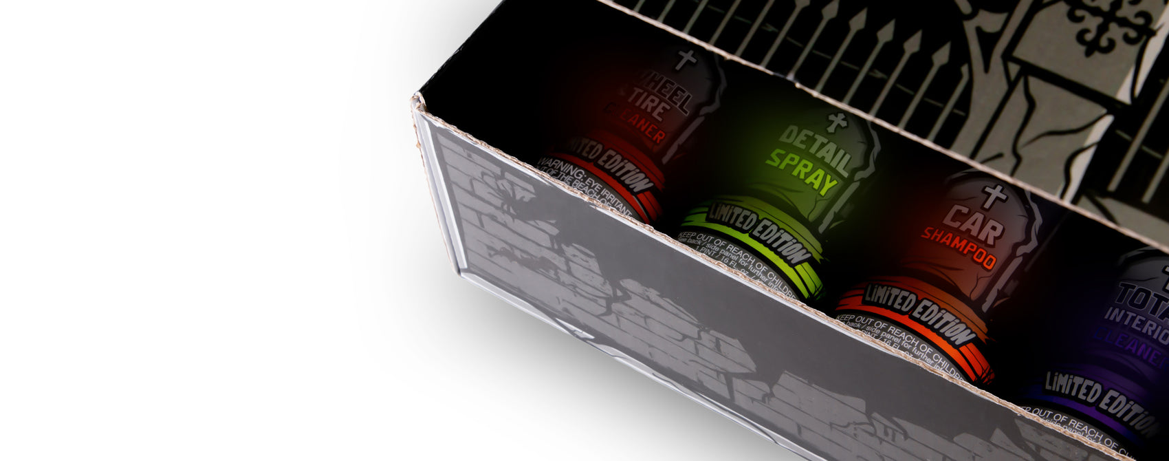 Halloween may be all about the candy for kids, but for us, it's about creating an experience where you can have fun and enjoy detailing. This Halloween Limited Edition 2024 Design adds to the spooky and fun feeling you get during October. The design features a haunted grave yard theme where ghost, bats and skeletons come out to play. Pair the design with candy fragrances for each chemical and you've got yourself Halloween in a box! Here for a limited time, only 800 kits made, these will be gone before you know it.