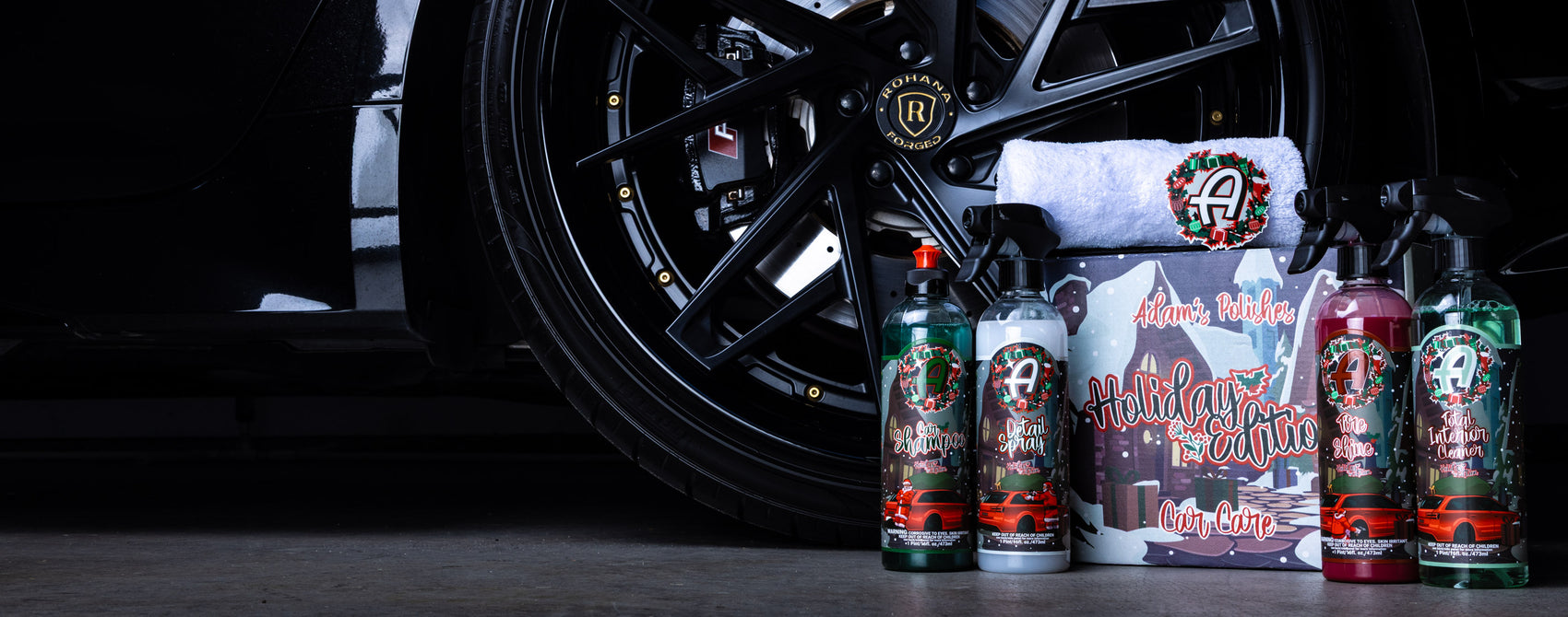 Every year we release our best-selling and highly gift-able Holiday Car Care Kit. This all-in-one kit includes everything you need to wash, shine, and enhance your vehicle with Adam's signature formulas—wrapped in cheerful holiday flair. From a rich, foaming shampoo that delivers a pH neutral clean, to an all-surface interior cleaner that keeps your cabin merry and bright, to a quick-gloss detail spray and a super shiny tire shine that adds seasonal perfection for that showroom finish—this kit ensures your car looks its best for every holiday to come. This kit is the perfect gift to put under the tree for the car lover in your life.