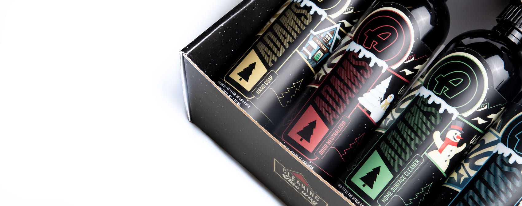 Happy Holidays! This year, we've stepped up our limited edition holiday design and picked our top-selling products that you (or someone else) are sure to love. This box kit includes all 4 of our 16oz holiday home care chemicals with holiday scents to get you in the holiday spirit! Grab one for yourself or give it as a gift!