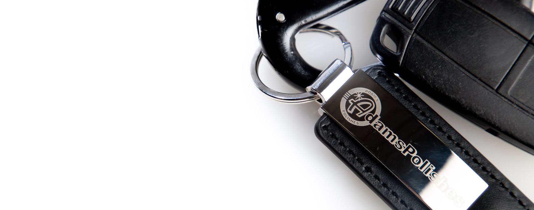 Adam's Leather Keychain is a simple, classy look to add to your keys! This black leather features a metal engraved design with a ring included.