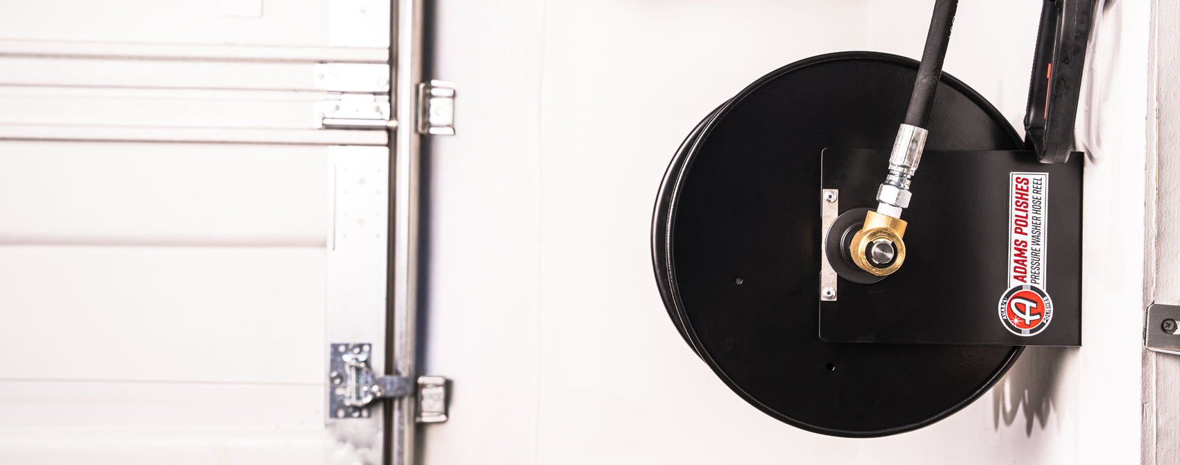 Adam’s Pressure Washer Hose Reel was designed to accommodate up to 100 feet of pressure washer hose. This premium reel is engineered for durability, convenience, and seamless integration with Adam’s Pressure Washer system. Right out of the box, you’ll have everything you need for a quick and easy setup. The reel includes all necessary fittings, a 6-foot jumper hose with a 3/8-inch quick disconnect, and compatibility with Adam’s Super Flex hose, ensuring maximum efficiency and ease of use. Crafted with a sleek, matte black powder-coated finish, this hose reel not only performs exceptionally but also adds a professional look to your setup. It’s built to handle pressures up to 4500 PSI, making it a robust and reliable choice for demanding tasks.