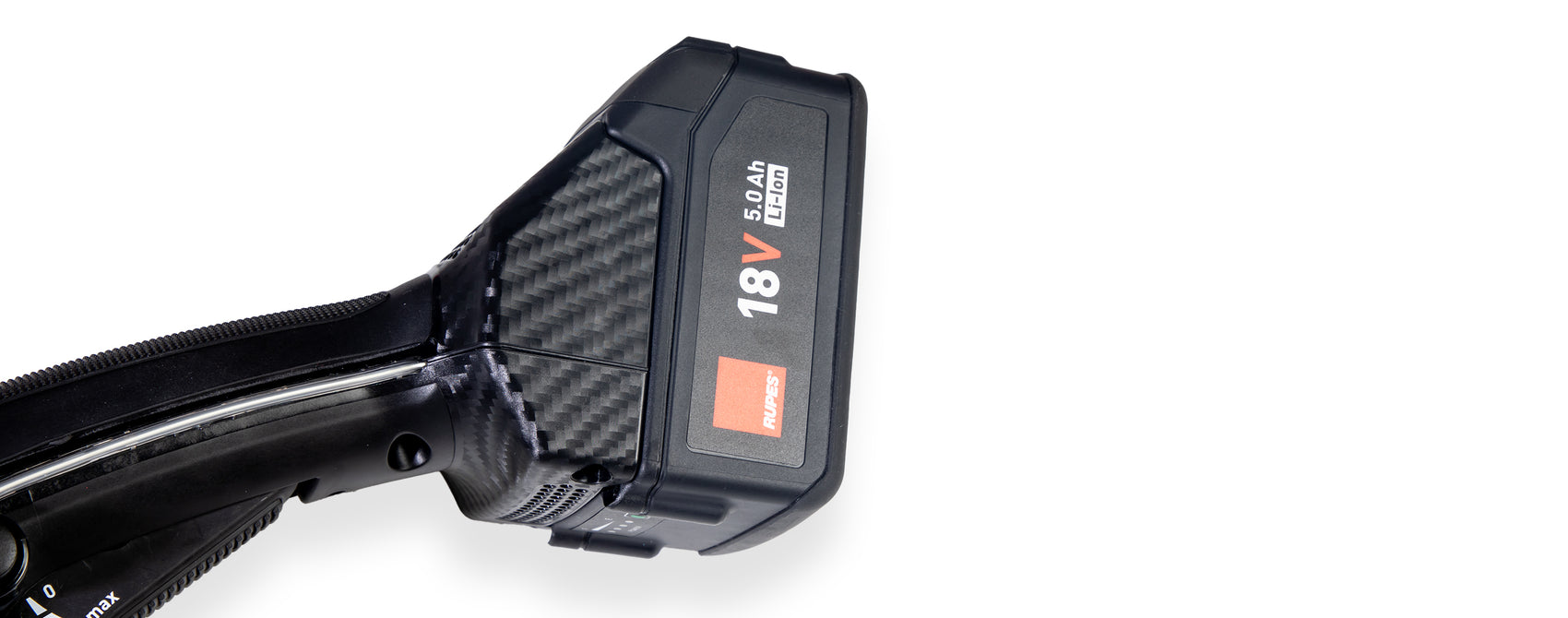 Experience unrivaled power and endurance with the battery of the new BigFoot iBrid polisher. This cutting-edge battery boasts an impressive 18V power supply, paired with a substantial 5 Ah capacity, ensuring prolonged operation without interruptions. Its advanced Li-ion technology guarantees reliability and quick recharge times.